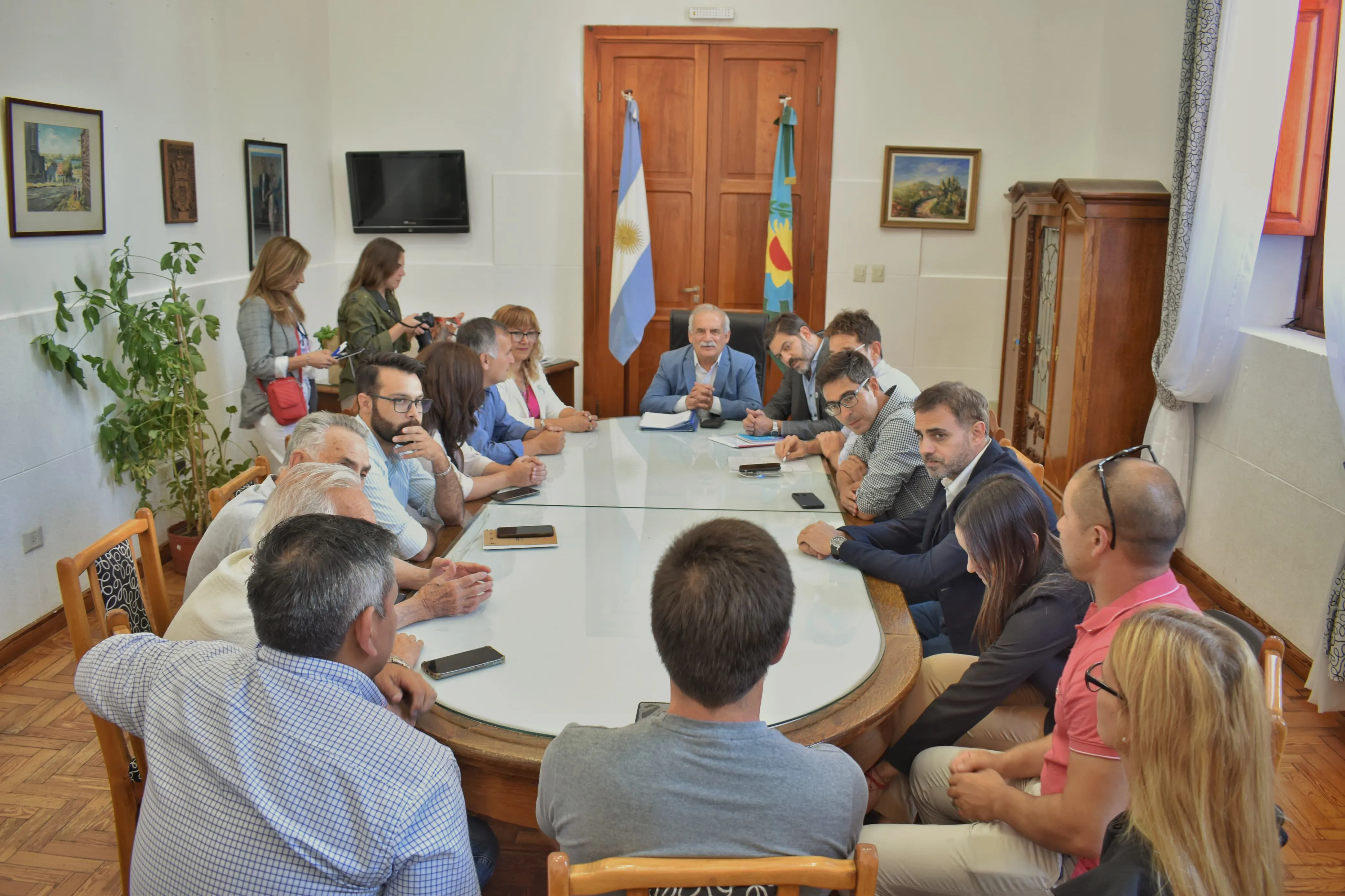 Luego de la recepción protocolar, se realizó una rueda de prensa con la participación de medios locales, ocasión en la que el ministro Bianco expresó que "el objetivo de la gira general es ponerme a disposición de los intendentes de los distintos distritos, escuchar cuales son las necesidades en un contexto muy complejo como el que estamos viviendo y poder acercar soluciones y respuestas del gobierno provincial a las necesidades que tiene cada uno".