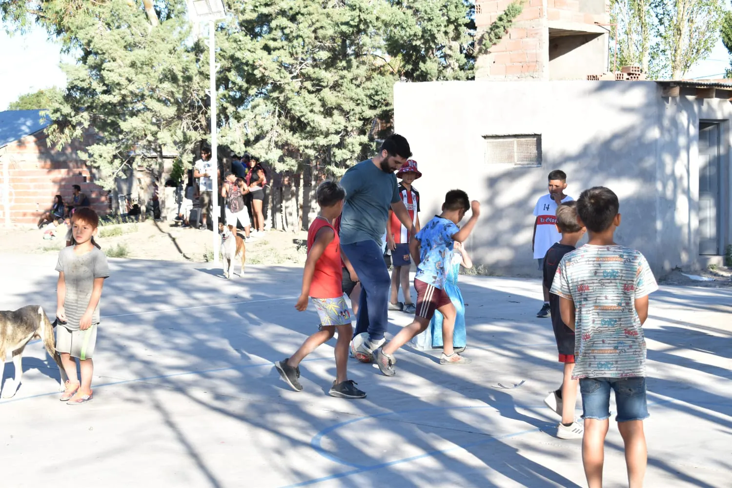 El playón del barrio Villa del Carmen fue el lugar de encuentro de familias completas que participaron de las distintas alternativas: juegos recreativos, taller infantil de pintura, cine, baile, forestación, deportes y un espacio informativo sobre los programas que coordina la Oficina de Empleo, música y un refrigerio.